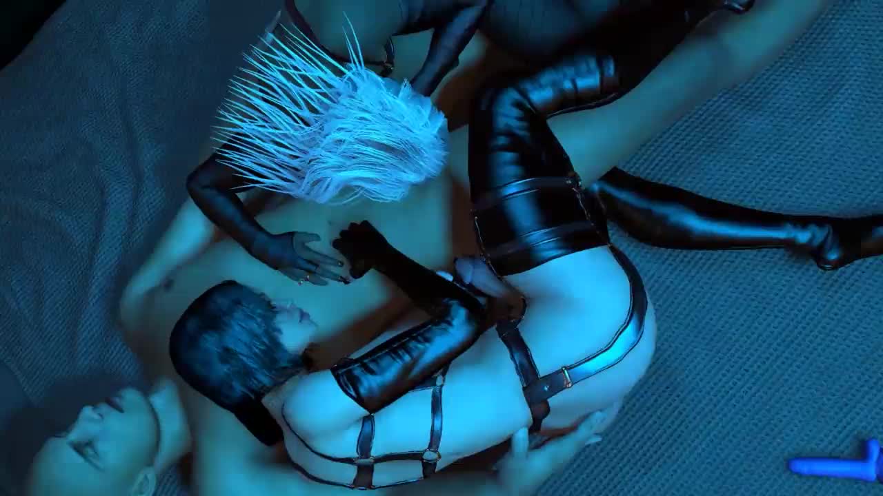 The strapon ho spoon feeds cum in this group scene