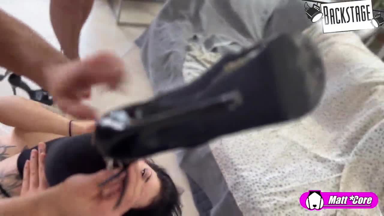 Behind the scenes, a brunette babe with tattoos tries anal for the first time in a casting workshop