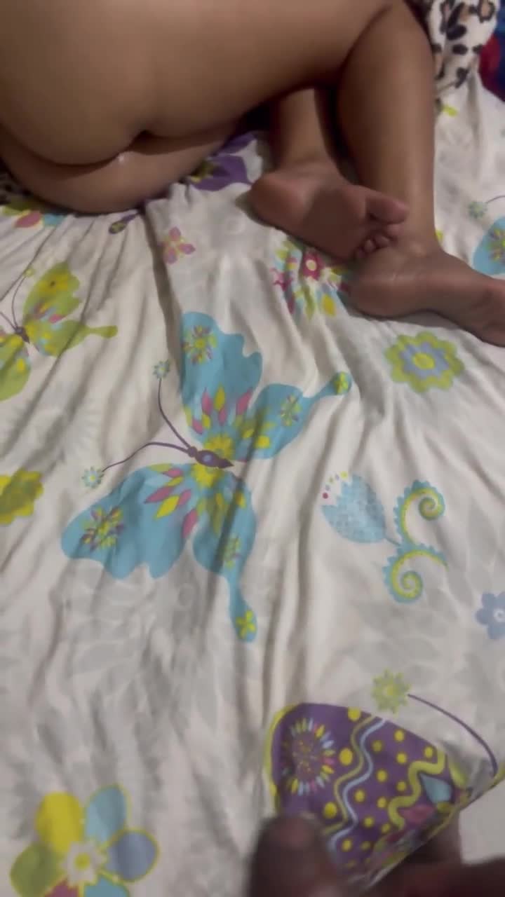mi hermanastra me guía a su cuarto y me hace acabar dentro de su culo apretado
