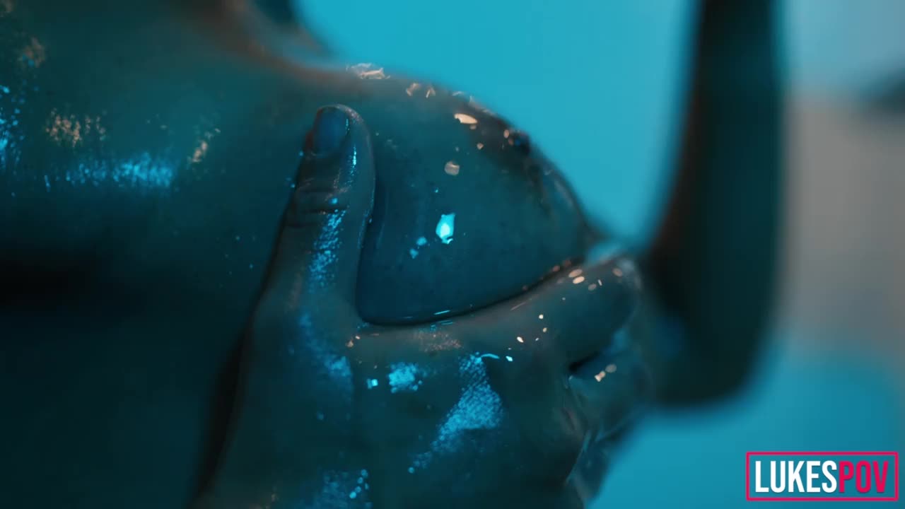 Fitness model with big boobs gets oiled up and covered in cum during pov session