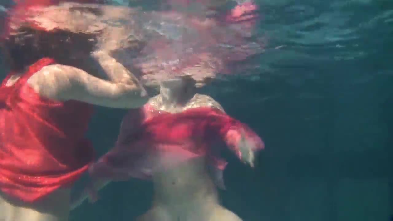 Bad Quality Underwater Lesbian Show in Public Pool
