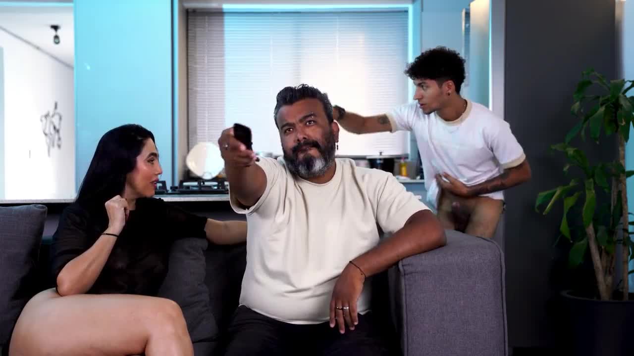 trans cheerleader gets wild in a group anal bukakke scene.